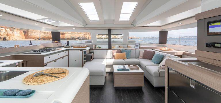 Compared to the first-generation Helia 44, the team at Racoupeau and Fountaine Pajot has made some significant changes inside, particularly with respect to the large 180sq. ft saloon.
