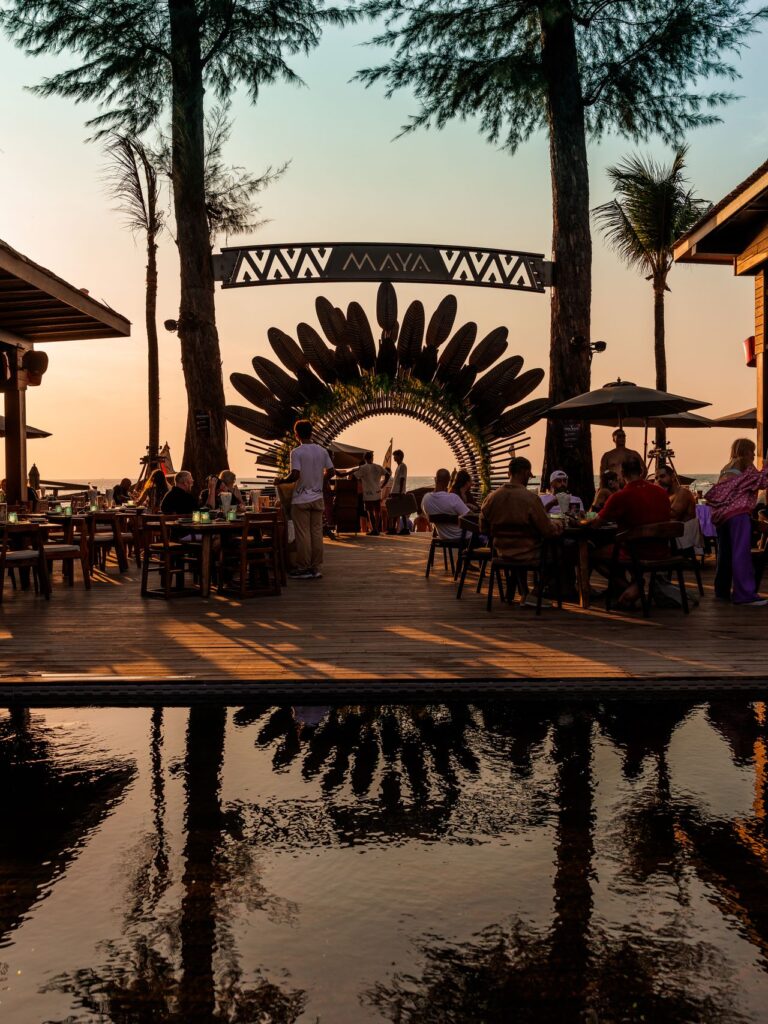 Днем Maya воплощает собой современное видение пляжного клуба премиум-класса. Грамотно зонированное, комфортабельное пространство с панорамным видом на Андаманское море отличается особым вниманием к деталям и уровню сервиса. Каждый элемент декора, каждый жест персонала работают на создание атмосферы, в которой роскошь ощущается легко и естественно.